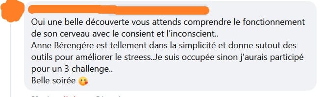 * En vous inscrivant à la formation, vous souscrivez à ma newsletter, dans laquelle j'envoie, au maximum une fois par semaine, des infos, astuces, conseils, etc. sur le stress, le cerveau et les neurosciences, le sommeil... Vous pouvez vous désinscrire à tout moment facilement en cliquant sur le lien de désinscription qui figure en bas de chaque mail.